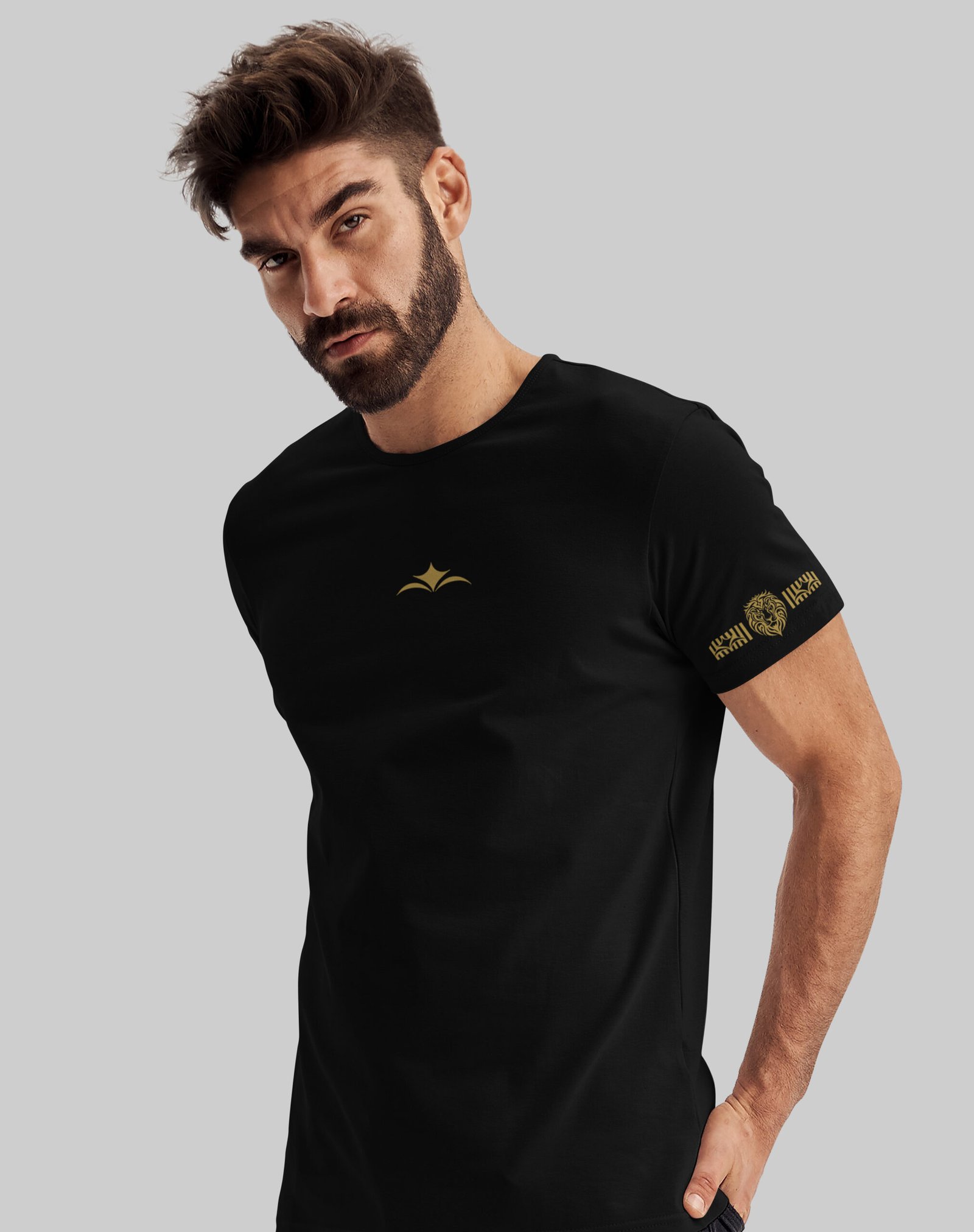 The Artwork : The “Leone Imperiale” T-shirt embodies Italian mastery and uncompromising quality. Meticulously tailored for a regal silhouette which merges heritage craftsmanship with modern sophistication. Minimalist gold crown positioned at mid-chest with Bold, intricate lion head in heraldic crest style encircled by a regal bracelet motif that wraps around the sleeves. Subtle detailing frames the artwork, symbolizing conquest and nobility.